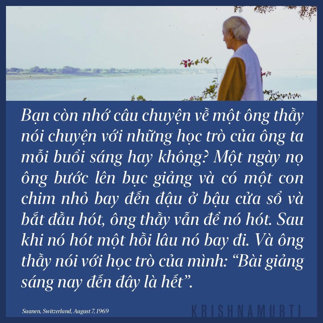 Bạn còn nhớ câu chuyện về một ông thầy nói chuyện với những học trò của ông ta mỗi buổi sáng hay không? Một ngày nọ ông bước lên bục giảng và có một con chim nhỏ bay đến đậu ở bậu cửa sổ và bắt đầu hót, ông thầy vẫn để nó hót. Sau khi nó hót một hồi lâu nó bay đi. Và ông thầy nói với học trò của mình: “Bài giảng sáng nay đến đây là hết”.
